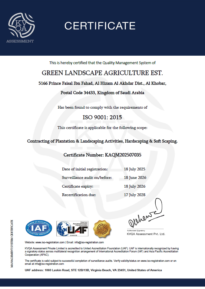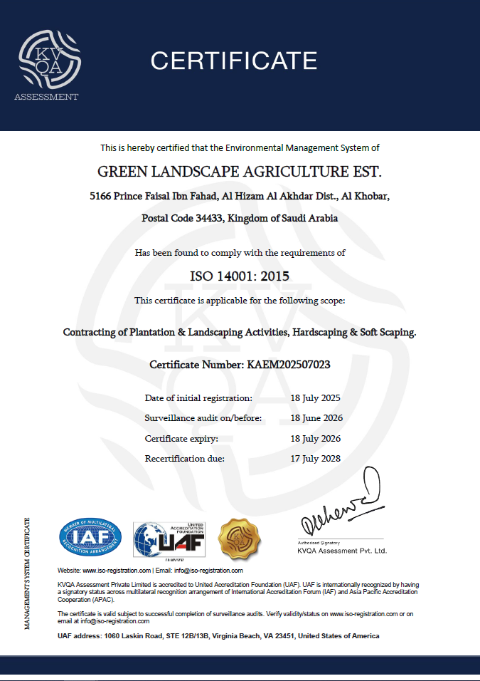 We are proud to be recognized and certified by leading local and international authorities for our practices in landscaping, environmental sustainability, and project execution.